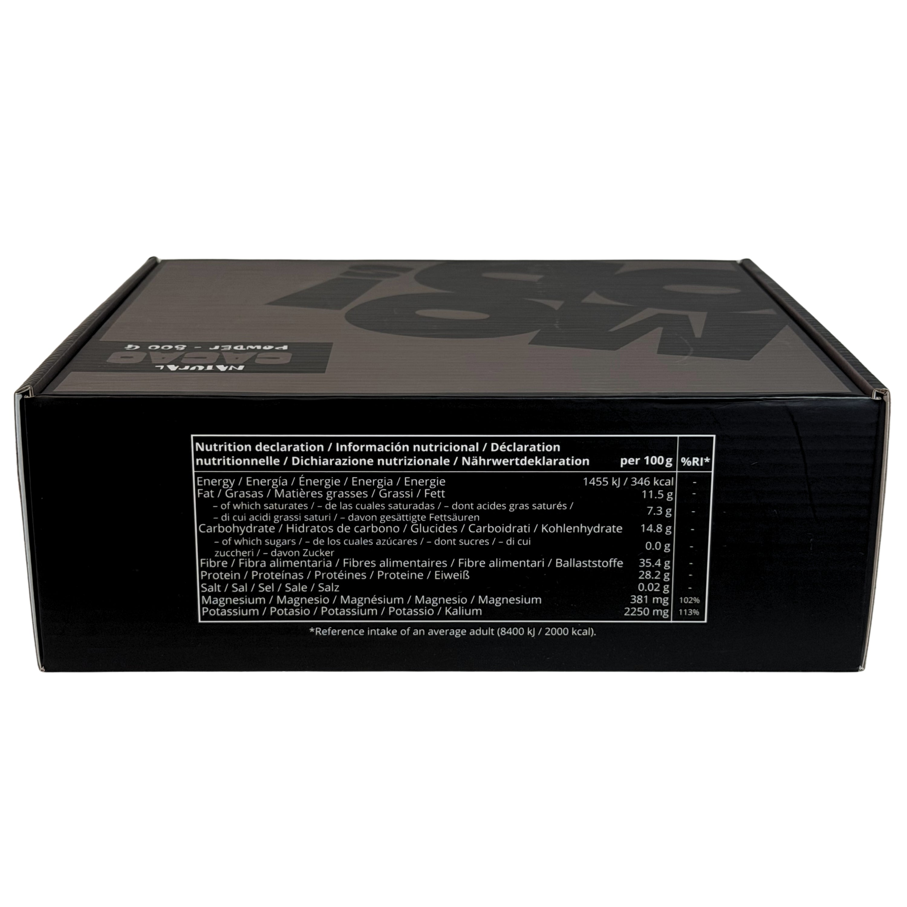 • Obtenido a partir de granos cultivados de forma sostenible y procesados a baja temperatura para preservar propiedades nutricionales. No está alcalinizado, lo que garantiza un perfil más puro y menos manipulado.